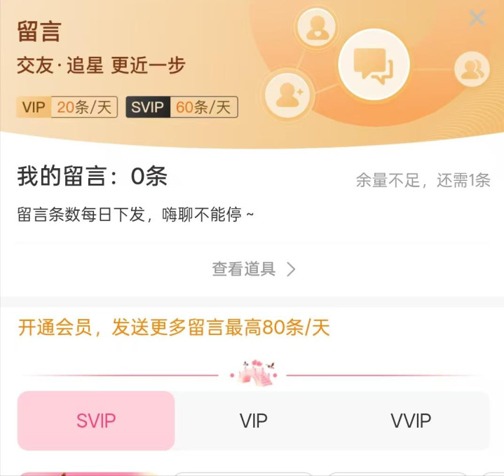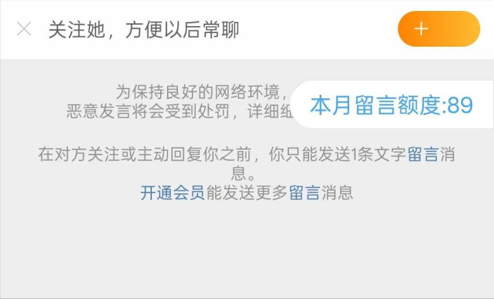 记得以前私信是没有任何限制的,好家伙,现在打招呼额度也成了一项收费业务。当看到右上角的数字的时候,像是在提醒“您好,该续费了”