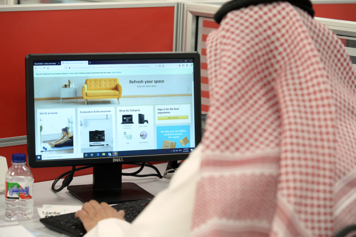 一名男子在科威特费尔瓦尼耶省的办公室里浏览网上商品(新华社)